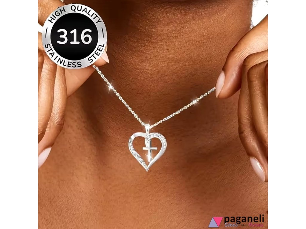 2× identický náhrdelník s přívěskem Srdce & Kříž